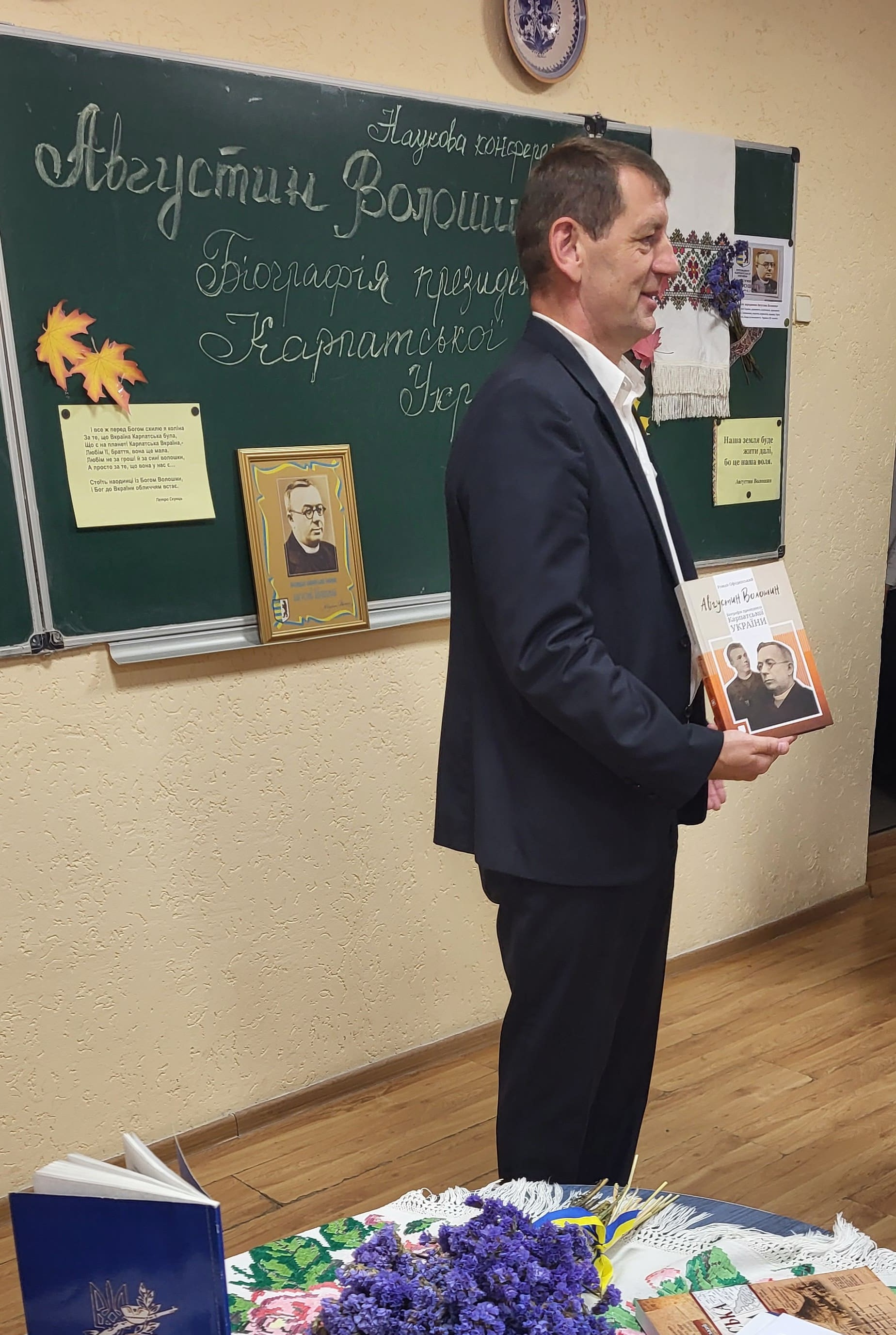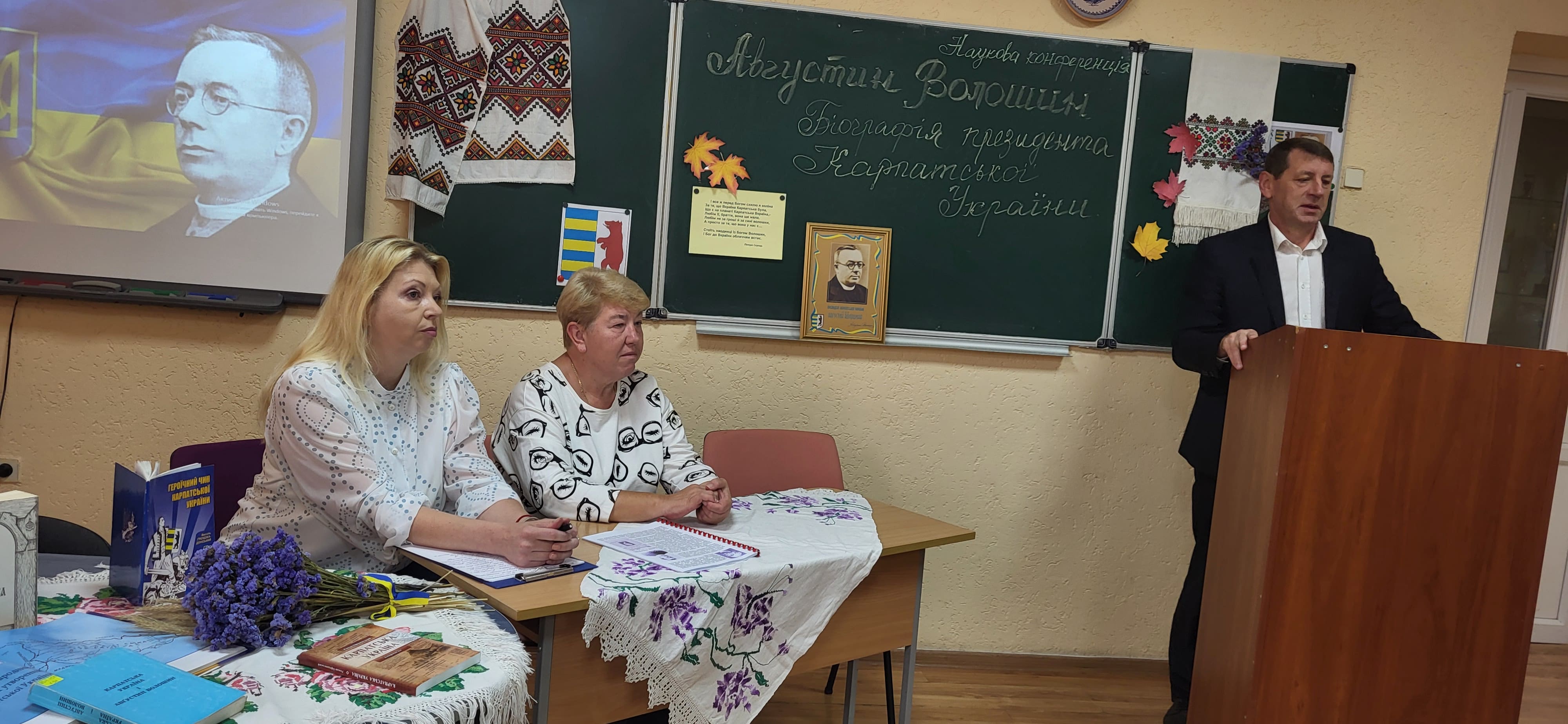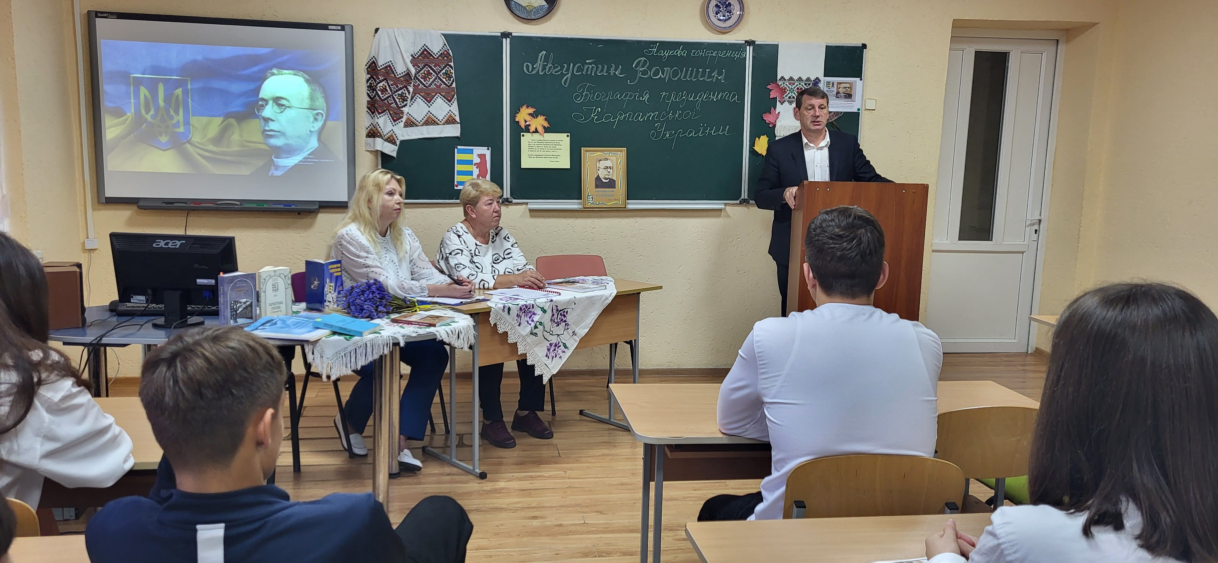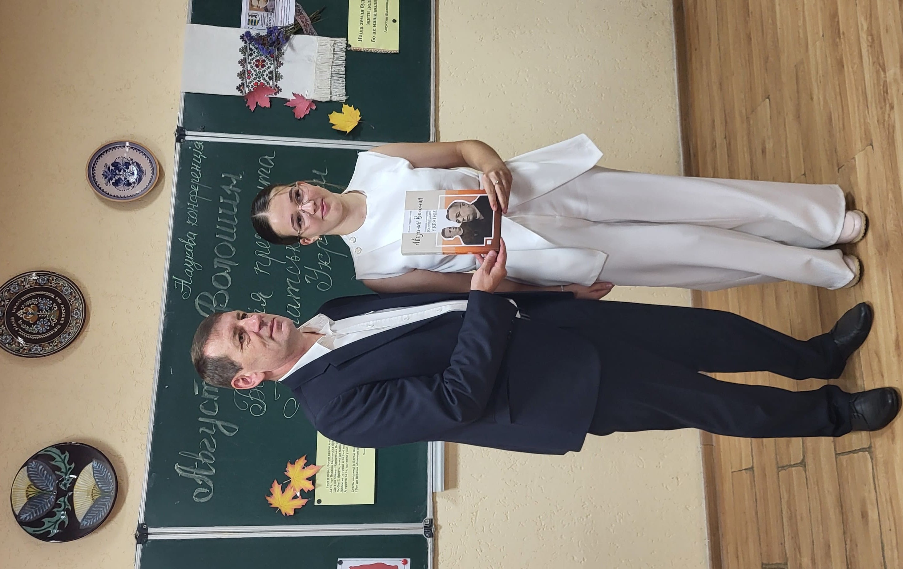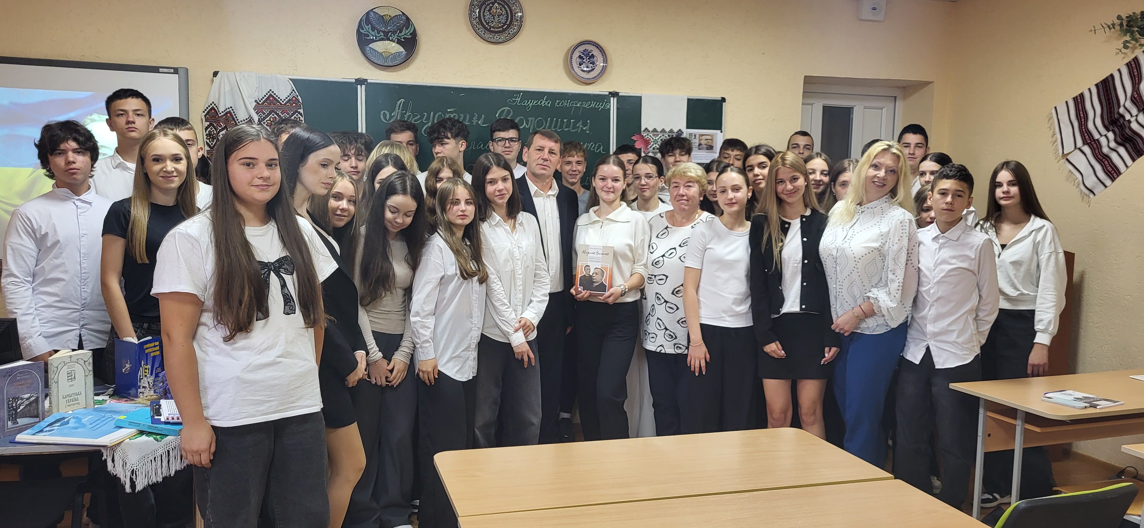 15 вересня в Ужгородському науковому ліцеї відбулася наукова конференція, присвячена презентації книги ’’Августин Волошин. Біографія першого президента України.’’ автором - доктором історичних наук, професором Романом Офіцинським. Письменник захопив учнів 10-их класів своєю розповіддю, дослідженням про багатогранну діяльність найбільшого сина Карпатської України, його чисте, гармонійне, жертвенне й нагороджене вінцем мученика за віру, за народ, за українську соборність життя – Августином Волошиним. Учні поставили ряд запитань Роману Андрійовичу, поспілкувалися з професором, перглянули сторінки книги і, як вдумливі читачі, прийшли до висновку, що проголошення Карпато-Української Держави, хоч навіть у федерації з чехами і словаками, в загальному мало колосальне значення не тільки для карпатських українців на цьому відтинку часу, але й вирішило раз на всі часи приналежність Закарпаття до України.