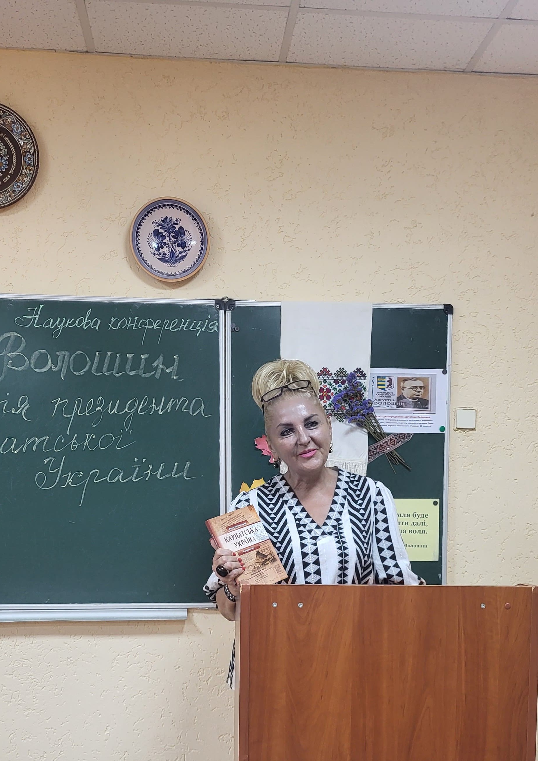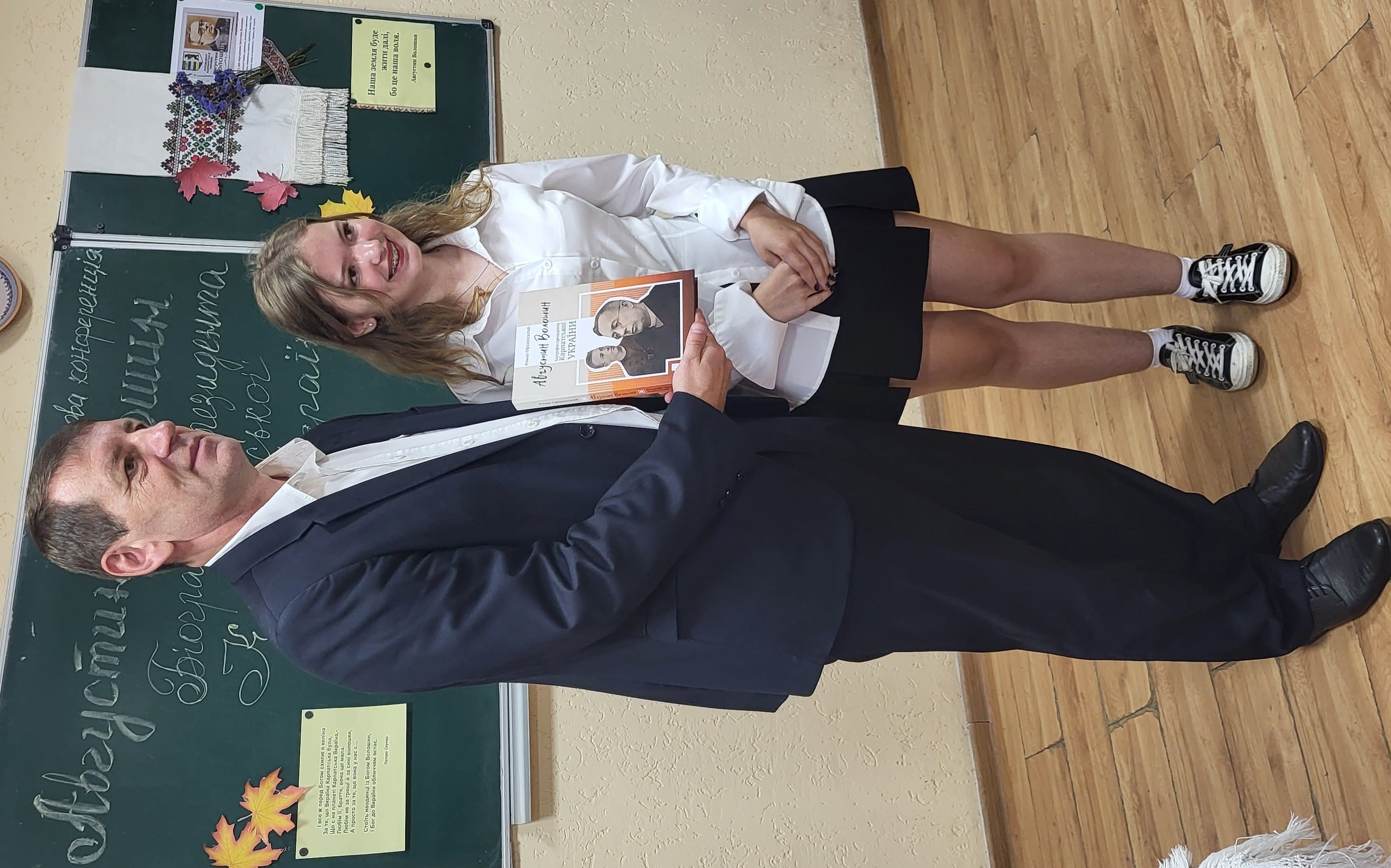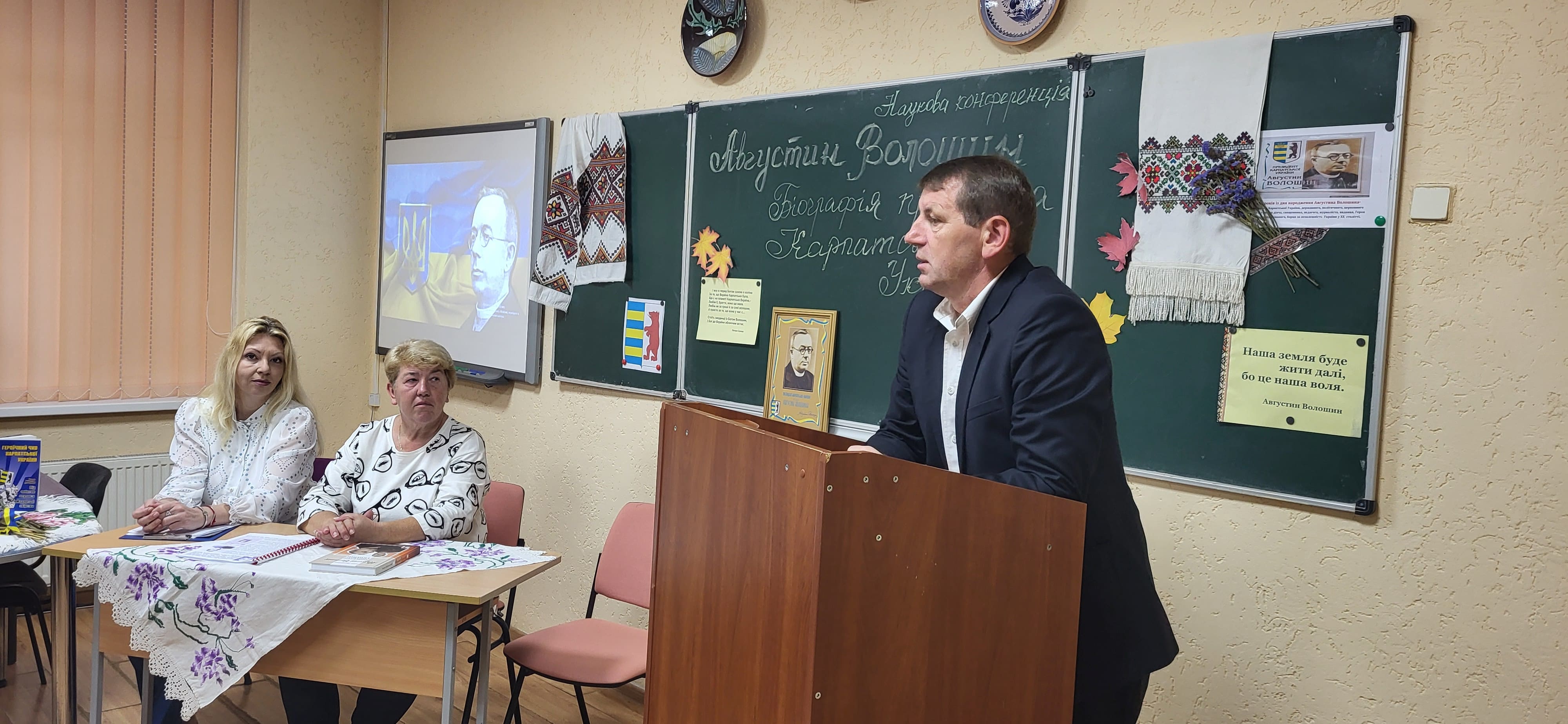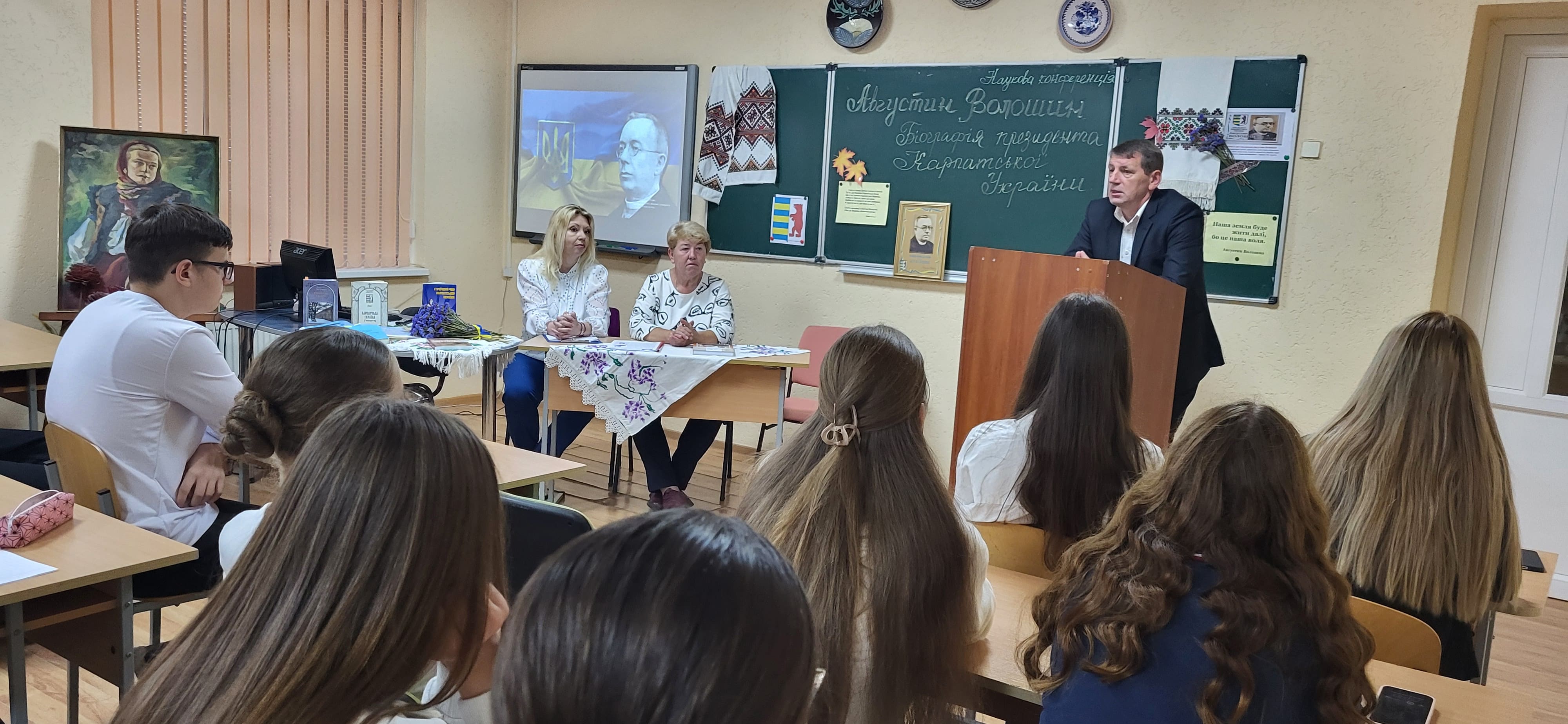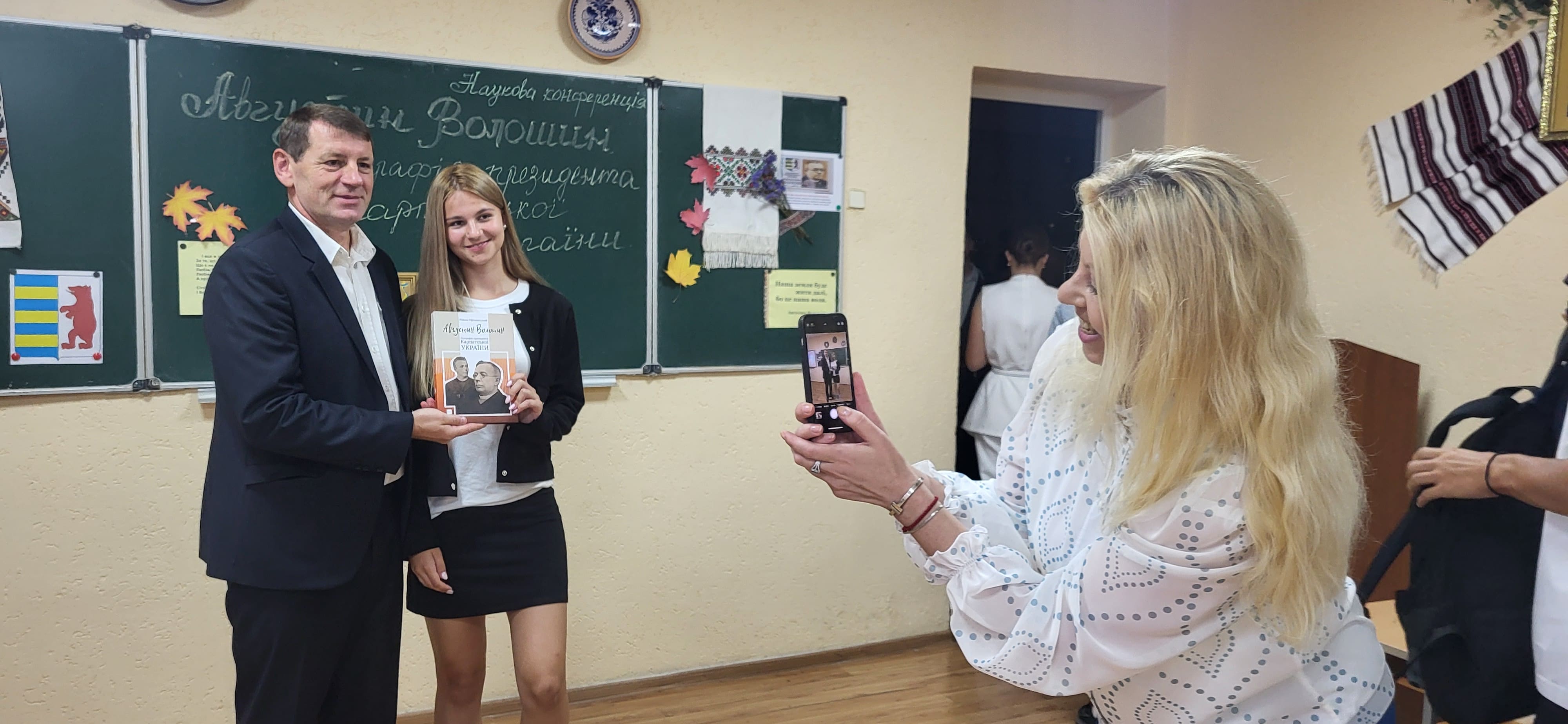 15 вересня в Ужгородському науковому ліцеї відбулася наукова конференція, присвячена презентації книги ’’Августин Волошин. Біографія першого президента України.’’ автором - доктором історичних наук, професором Романом Офіцинським. Письменник захопив учнів 10-их класів своєю розповіддю, дослідженням про багатогранну діяльність найбільшого сина Карпатської України, його чисте, гармонійне, жертвенне й нагороджене вінцем мученика за віру, за народ, за українську соборність життя – Августином Волошиним. Учні поставили ряд запитань Роману Андрійовичу, поспілкувалися з професором, перглянули сторінки книги і, як вдумливі читачі, прийшли до висновку, що проголошення Карпато-Української Держави, хоч навіть у федерації з чехами і словаками, в загальному мало колосальне значення не тільки для карпатських українців на цьому відтинку часу, але й вирішило раз на всі часи приналежність Закарпаття до України.