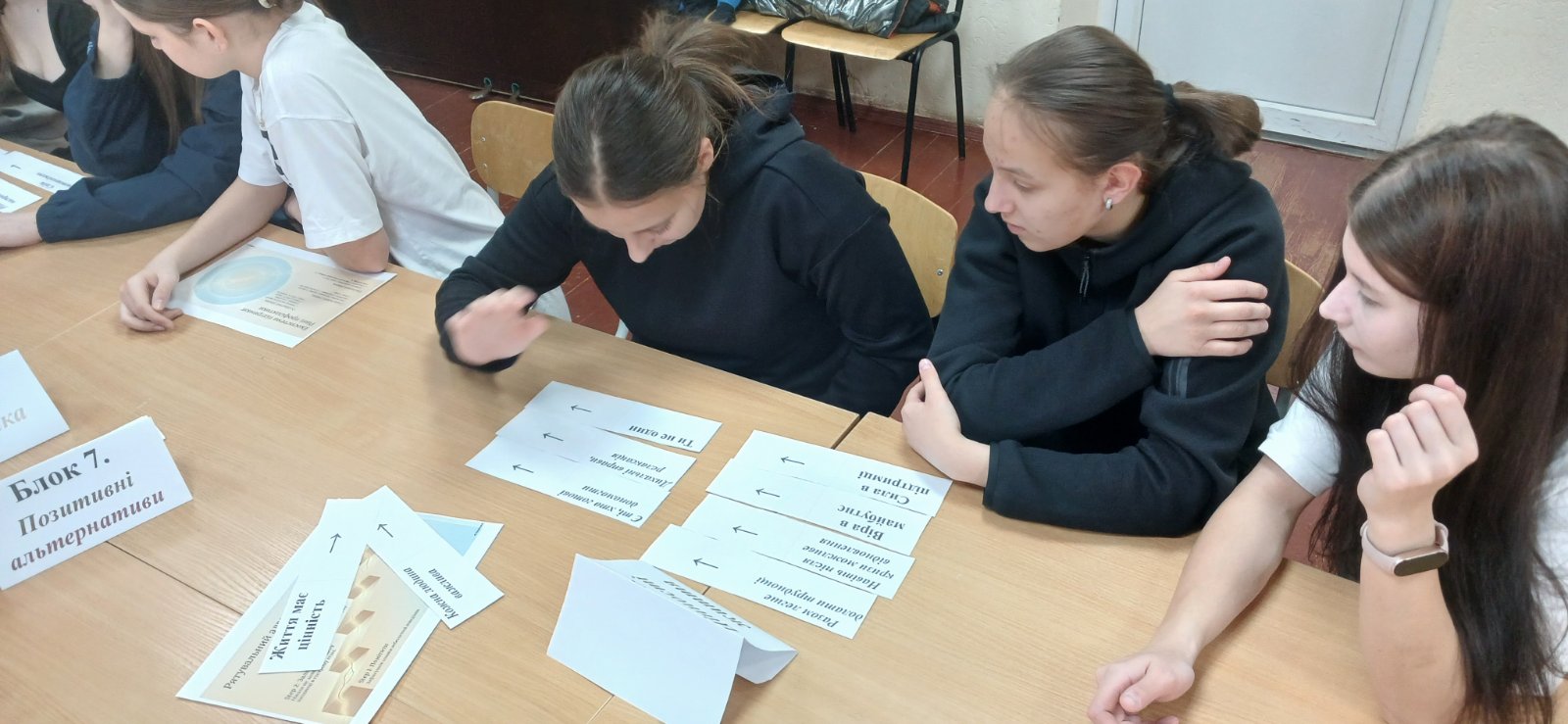 Під час годин спілкування учні обговорили важливість підтримки один одного, довіри до батьків, педагогів та фахівців. Особливу увагу було приділено розпізнаванню емоційних труднощів, подоланню стресу, а також небезпеці проявів самоушкоджувальної поведінки (селфхарму).